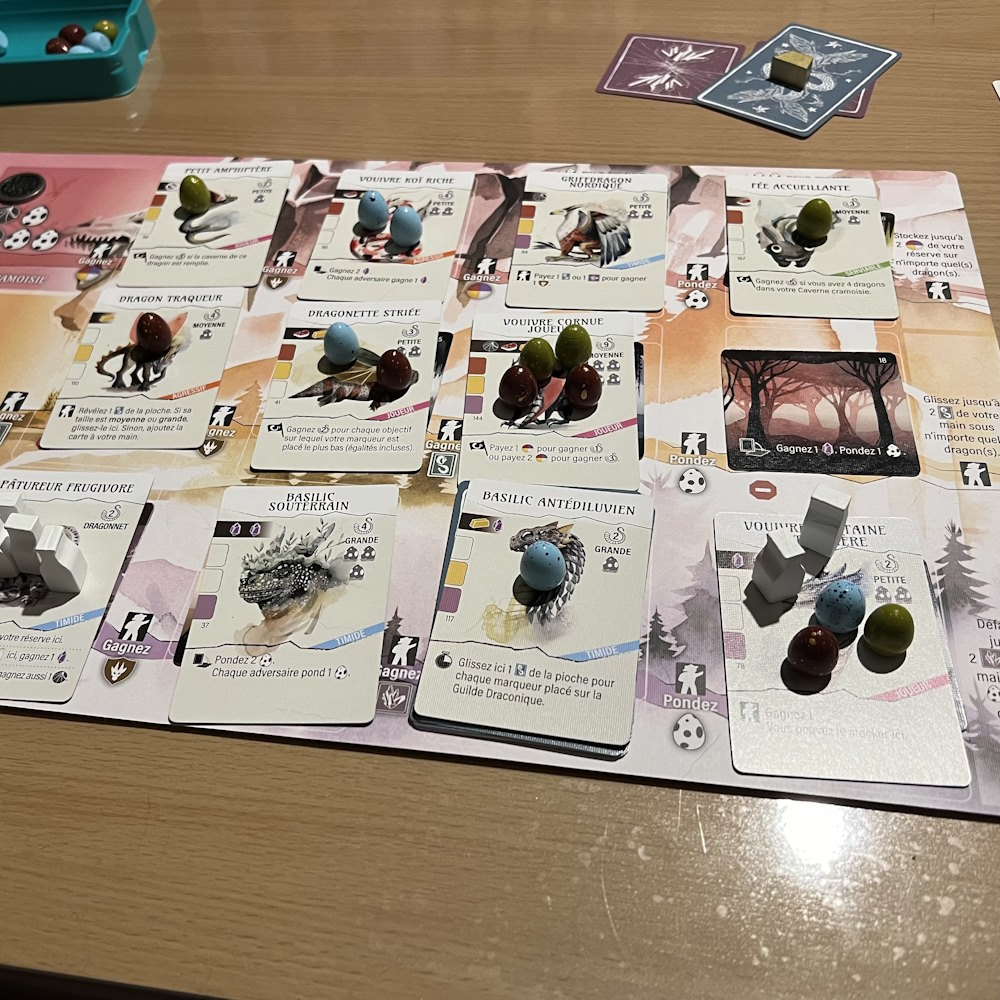 Et malgré toutes les qualités que nous pouvons attribuer à Wyrmspan (mécanique retravaillée / épurée / thématique, dragons magnifiques, excavation de lieux avant d’y attirer un dragon, le côté plus gamer donc plus tendu, plus dynamique …), il ne rentrera pas dans mon top 20 de l’année. Clairement pas. J’en attendais beaucoup (cause avis très positifs) et je trouve par ailleurs que les cartes n’ont rien de plus que Wingspan. Ce qui donne absolument aucune surprise thématique ou petit twist qu’on aurait apprécié. La guilde n’apporte pas grand chose non plus: vue et revue, pas originale.