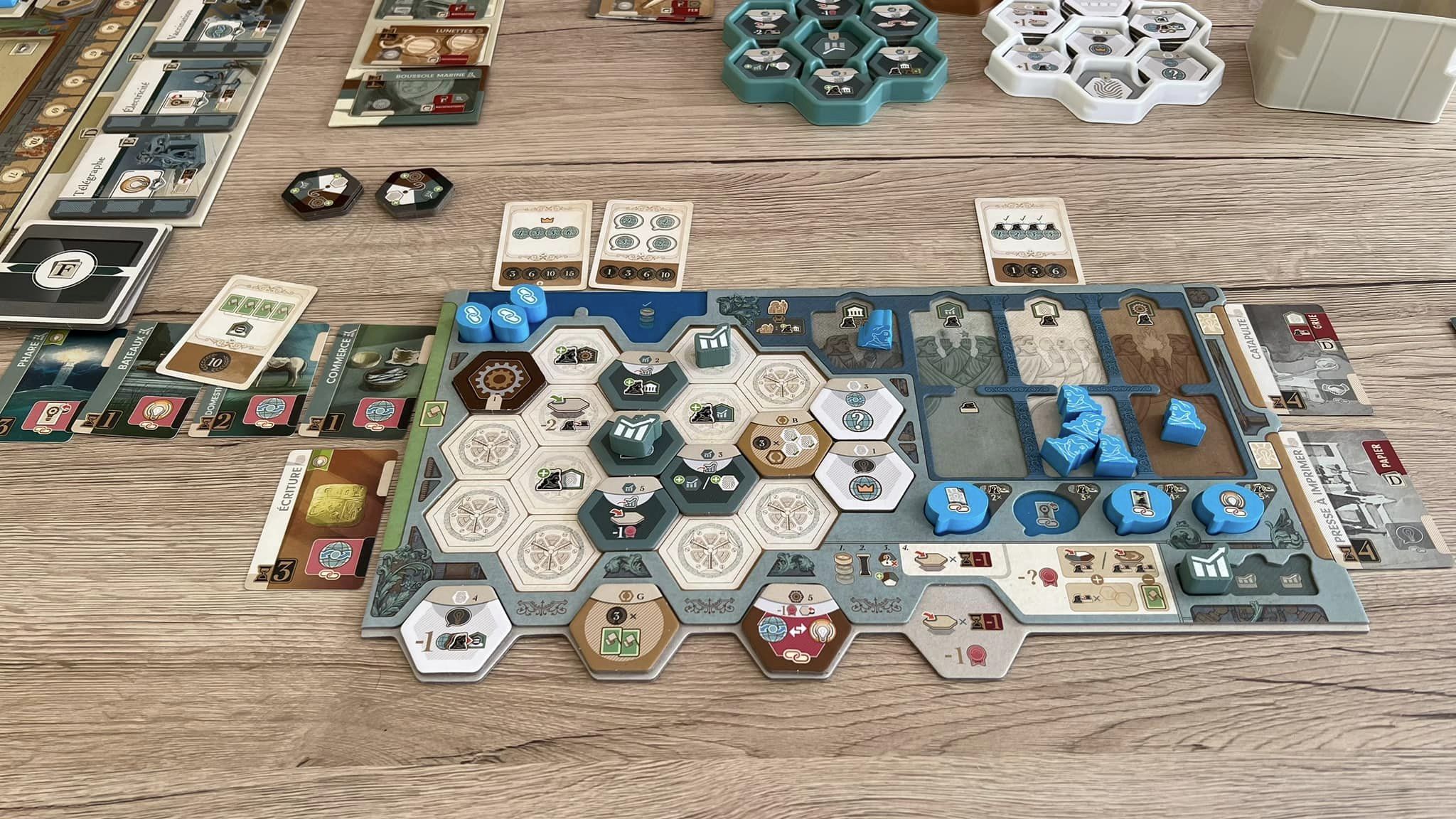 Ce que je trouve un peu dommage c’est que le thème est très faiblard comparé à ce qu’on a pu voir chez Lacerda. J’aurai aimé me mettre dans la peau d’un inventeur et ce jeu ne transpire pas le thème. Pas assez à mon goût. Par contre, mécaniquement il est vraiment bon.