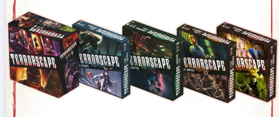 EDIT : Iello a annoncé sa localisation ! Les prix devraient être plus attractifs 🙂 [ MAIS  évidemment il y a un MAIS. Terrorscape a du potentiel grâce à la grande quantité de personnages, que l’on trouve malheureusement dans les extensions (même si le jeu de base propose quelques diversités). Ce qui fait que pour avoir un jeu VF complet et hautement rejouable, il faut acheter les extensions et cela revient à 266 € (uniquement la boite de base + ses extensions, hors deluxe) frais de port et taxes inclus.