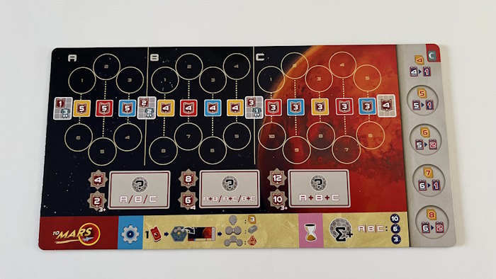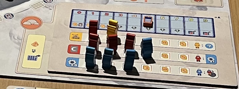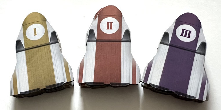 - La phase de Navette durant laquelle les joueurs choisiront une navette. Les navettes donnent des ouvriers Astronautes (de 3 couleurs différentes) et des ressources pour la manche en cours.