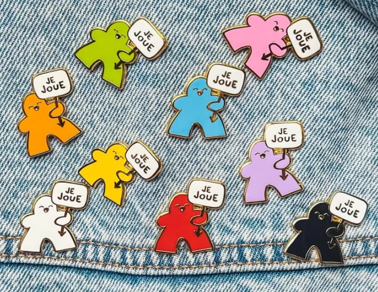 Dans le jeu de société, le grenier ludique propose des pin’s tout choupi ! J’en ai 2 à la maison et je les adore !
