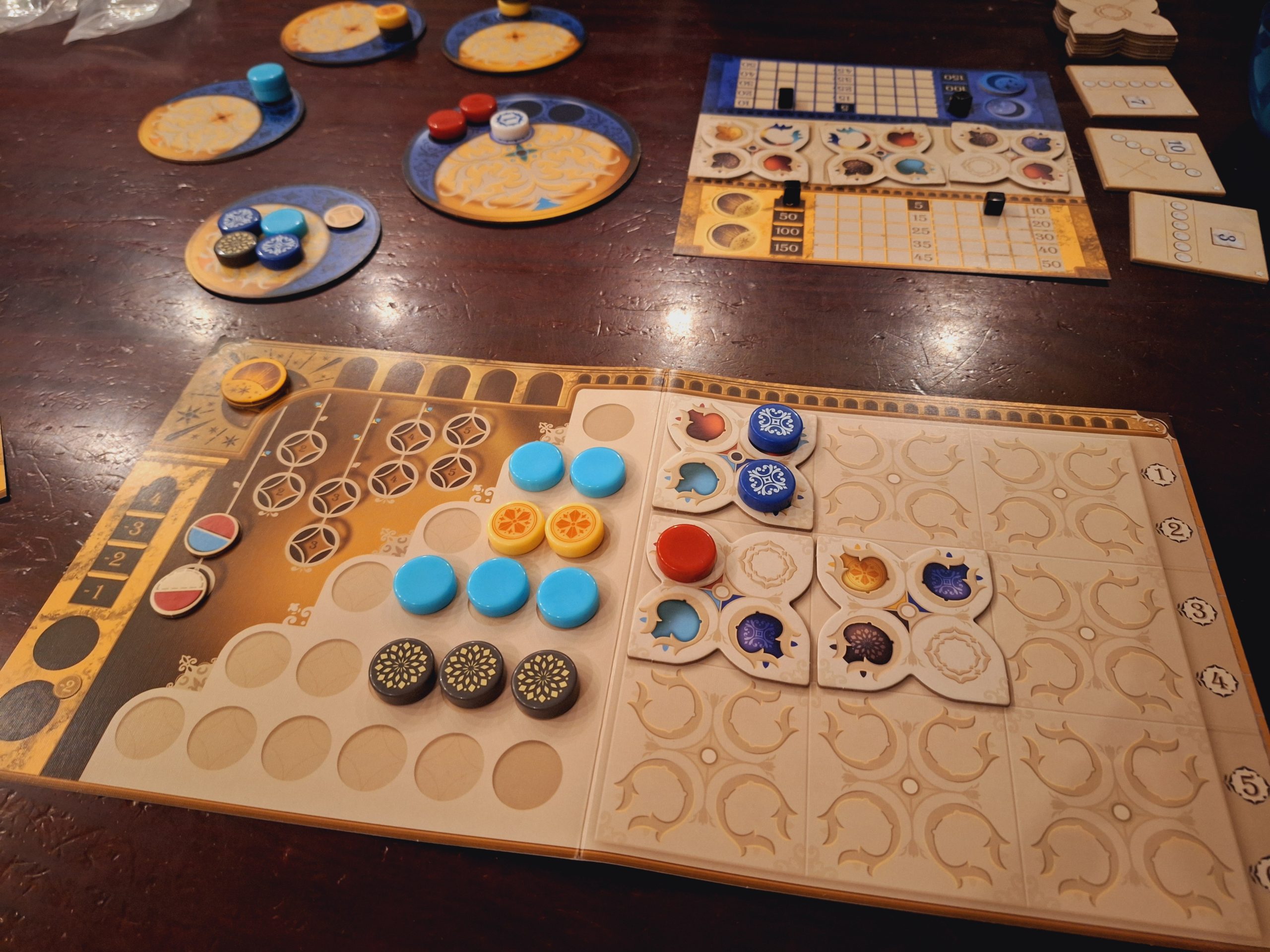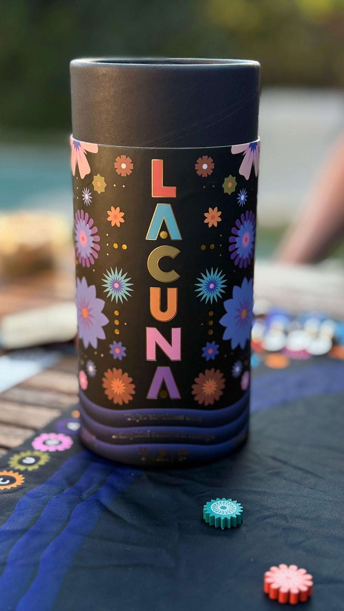 Tres beau ce Lacuna, tres agreable a jouer aussi sur la terrasse (ou pas d’aileur), le plaisir du jeu est bien la, une sorte de “pétanque”. Le reproche que je pourrais lui faire c’est difference de couleur des marqueurs des joueurs pas assez différente, l’or et l’argent se ressemble quand meme un peu trop, est ce que c’est parce que nous avons joué au soleil, peut etre.