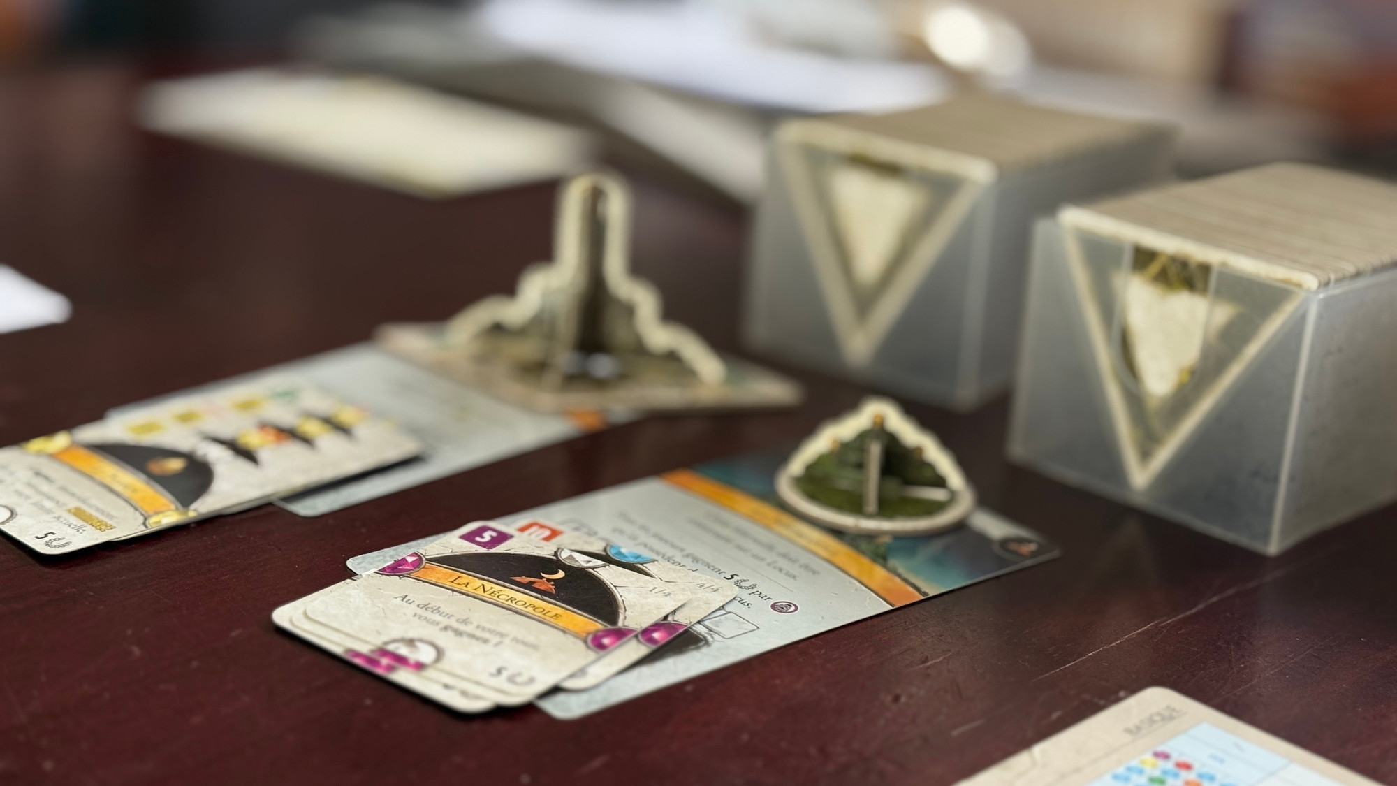 On va aller chercher des pouvoirs immédiats, des effets permanents, et du scoring. On va évidemment essayer de coiffer nos adversaires sur le fil pour les objectifs communs, ça râle sur le le plateau commun quand il s’agit d’aller se placer pour récupérer des ressources et des bonus. Je ne suis pas sûre d’enchaîner des dizaines de parties mais plusieurs avec grand plaisir (oui, je cherche aussi le successeur de Terraforming Mars et Ark Nova pour la maison, configuration 2 joueurs, avec 5mn max d’explications sur les grandes lignes de règles : preneuse de vos propositions :)).