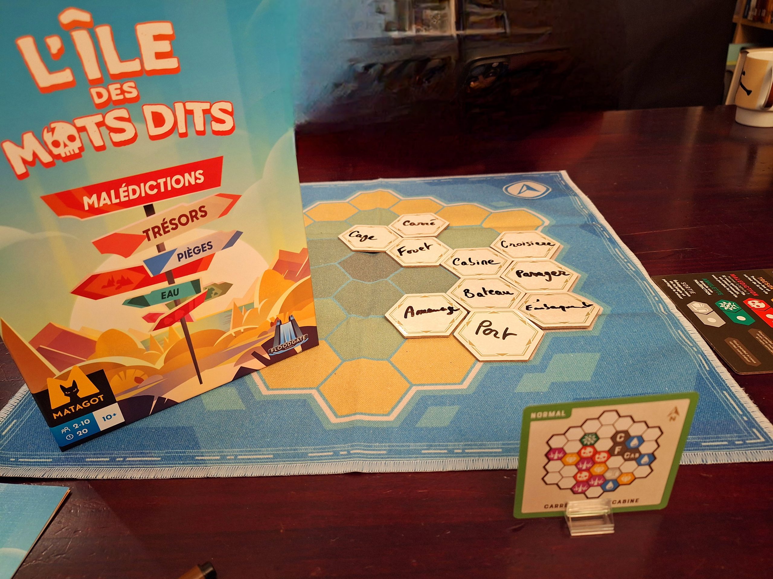 Et puis enfin on a fait une tentative ou deux sur l’ile des mots dits… si vous aimez la difficulté et less jeux comme Codenames, foncez !