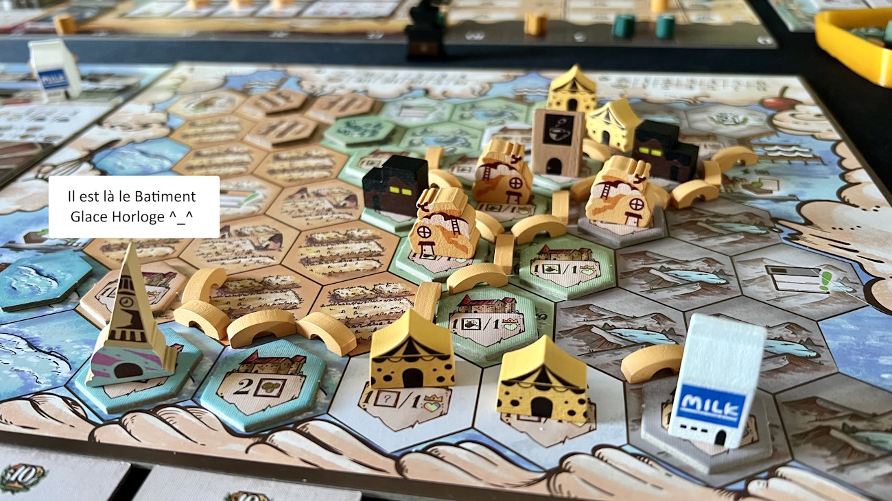 Je me dis d’ailleurs que l’on peut remplacer aisément le bâtiment Glace par des Bâtiments personnalisés (x4) en bois trouvés dans les jouets des enfants ou à fabriquer en bricks.