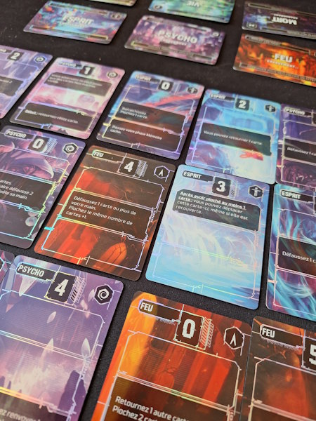 Nous incarnons des IA qui tentent de comprendre le monde en testant trois protocoles différents (en somme, on va jouer des cartes). Ce jeu de cartes pour 2 joueurs peut s’avérer très brutal. Trois zones se trouvent entre les adversaires, et chacun doit en prendre le contrôle. En début de partie, chaque joueur sélectionne 3 protocoles et récupère les cartes correspondantes. Vous jouerez ensuite les cartes de votre main dans la ligne du protocole associé (ou face cachée, où bon vous semble).
