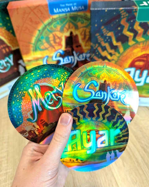- Passez au stand 3.M600 (Osprey Games) pour récupérer des stickers holographiques promotionnels de notre toute nouvelle sortie Ayar, ainsi que de ses prédécesseurs spirituels Merv et Sankoré !