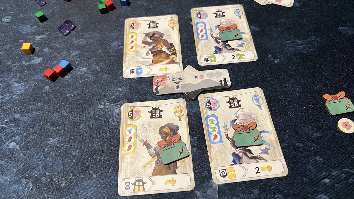 J’ai l’impression que pour ce jeu il va falloir avoir les yeux partout car vous déplacerez votre bateau pour faire des actions sur des iles partagées avec vos adversaires. Ces iles vont scorer quand un joueur déclenchera le festival et c’est là qu’il va falloir avoir du poisson sur vos constructions. Ce jeu doit du coup être hautement interactif et c’est ça qui m’attire en premier. Et en plus, il n’y a pas de combat, on va donc se gêner, se bloquer et tenter de marquer plus de points que les autres. J’aime aussi le fait qu’on récupère un Guide en début de manche qui permettra d’orienter sa stratégie de manche.