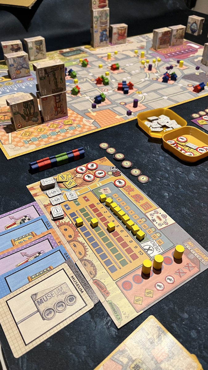 Il y a quelques twists intéressants: les ouvriers gagnent en expérience quand un ouvrier plus expérimenté est présent (que ce soit le vôtre ou celui de quelqu’un d’autres), cette expérience permet de mener des expéditions plus impressionnantes, le musée propose un jeu de majorité dans chacune de ses salles, il va falloir aussi équilibrer renommée et connaissances pour que tout fonctionne très bien !