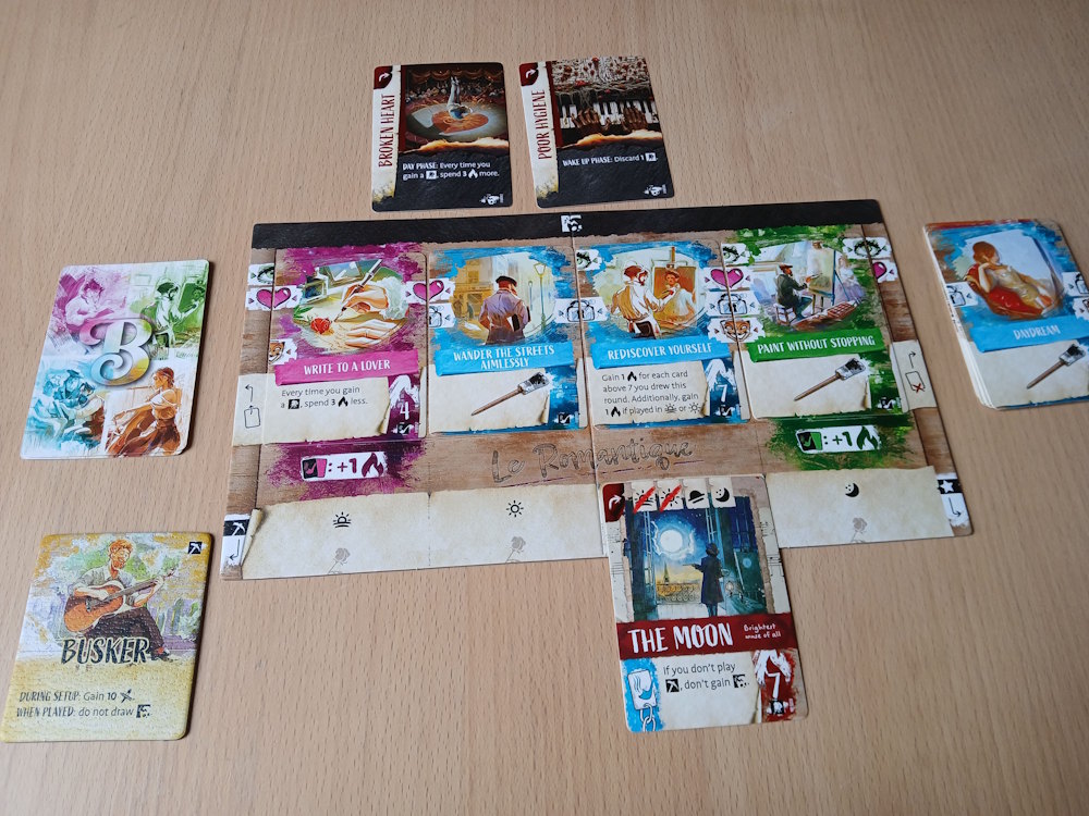 Chaque carte leur offre divers bonus et sources d’inspiration. Il est donc essentiel de gérer avec soin votre réserve de cartes et l’ordre dans lequel elles sont jouées afin d’obtenir le plus d’inspiration possible.