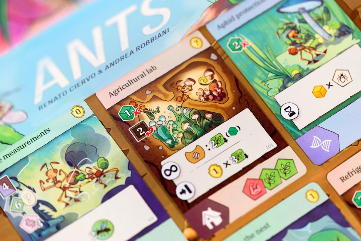 Dans l’univers des Rats de Wistar, je ne pouvais pas l’ignorer. Même si ces deux jeux ne partagent QUE l’univers graphique (que j’adore). Fourmis encourage l’interaction. Un vrai ballet tactique où conquête, combats (avec des neutres) et expansion de la fourmilière ont l’air de bien se mêler pour créer une expérience ludique dont on se souviendra. Ce qui me pousse à l’acheter en plus de ça, ce sont toutes ses cartes… et c’est pile ce dont j’ai envie en ce moment.