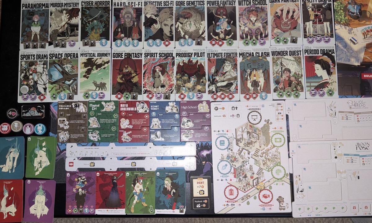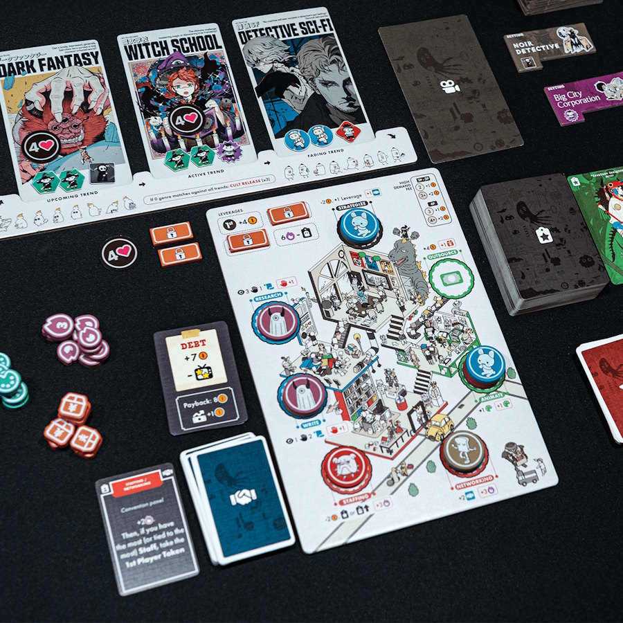 C’est un placement d’ouvriers avec plusieurs twists : les membres de votre staff ne peuvent faire que les tâches qui leur incombent, un membre ne peut être utilisé qu’une fois par manche, évidemment il y a le réalisateur qui peut tout faire 🙂 Le placement est payant au fait (bon ça c’est pas un twist). Il y a aussi une notion de staff fatigué ou genki staff (staff motivé, énergique), ce dernier aura un bonus sur l’action et parfois même un bonus quand l’animé est produit !