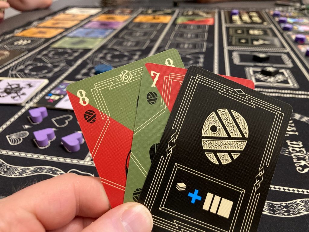 Et donc, pour « annuler » cette contrainte, il faudra générer un bijou (défausser une combinaison de 1, 2 ou 3 cartes).