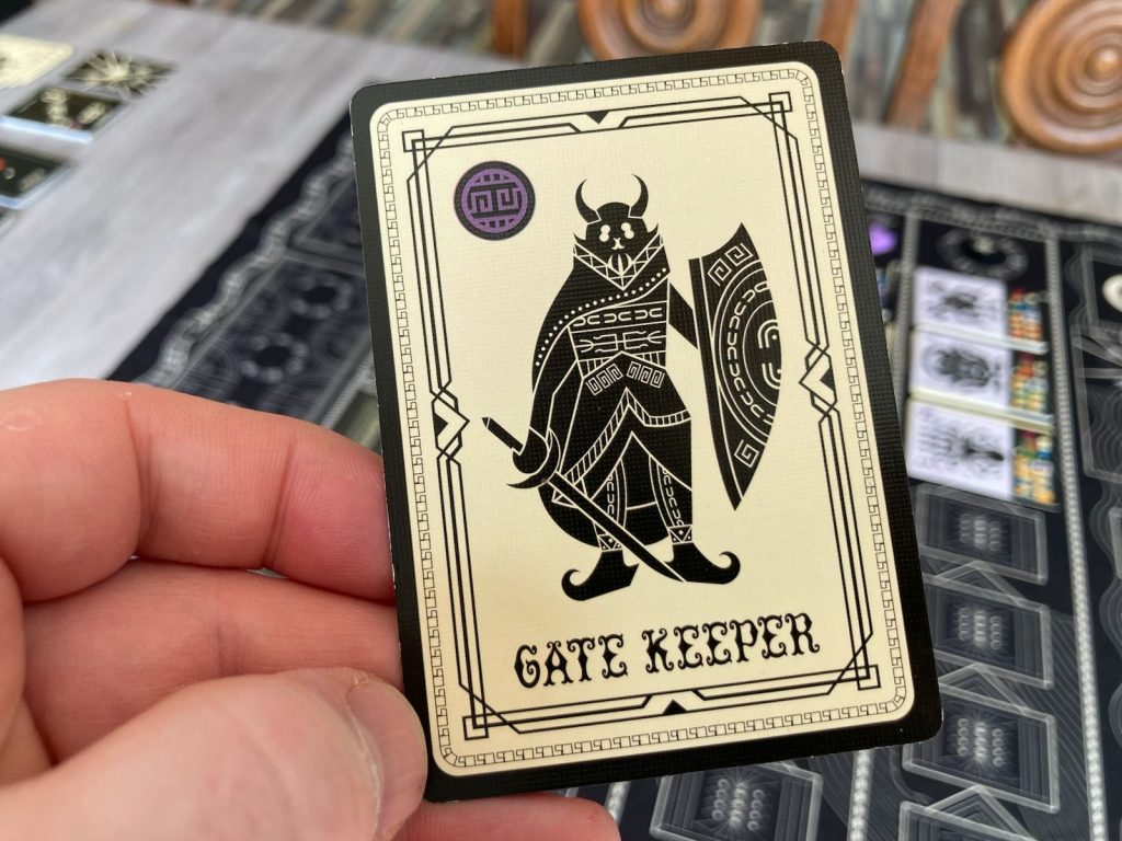 Alors évidemment il va vite falloir « gagner » de nouvelles cartes pour réaliser les objectifs. Lorsqu’un joueur parvient à jouer une carte dans le dernier emplacement libre d’une ligne, il choisit le deck (8 cartes) de l’un des éternels présents sur la ligne et le place sous sa pioche. On dit qu’il « réveille » un éternel. Si les trois (ou quatre) éternels de la ligne ont déjà été réveillés, un autre bonus est disponible.