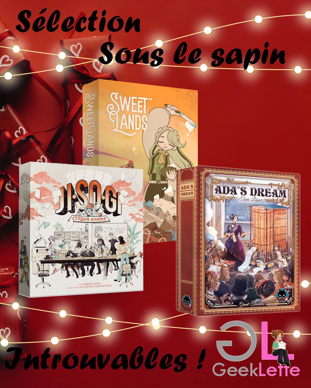 • Sweet Lands (Liens d’achat Ludum, Philibert): les boutiques ont été vidées oui, sauf peut-être les boutiques qui n’ont pas de site internet… mais un bon pour Sweet Lands sous le sapin ne peut que faire plaisir 🙂 Sweet Lands est mon coup de cœur 2025. Depuis cet été où j’ai pu jouer 5 fois, il hante mon esprit ! Et il revient en boutique tout début d’année 🙂