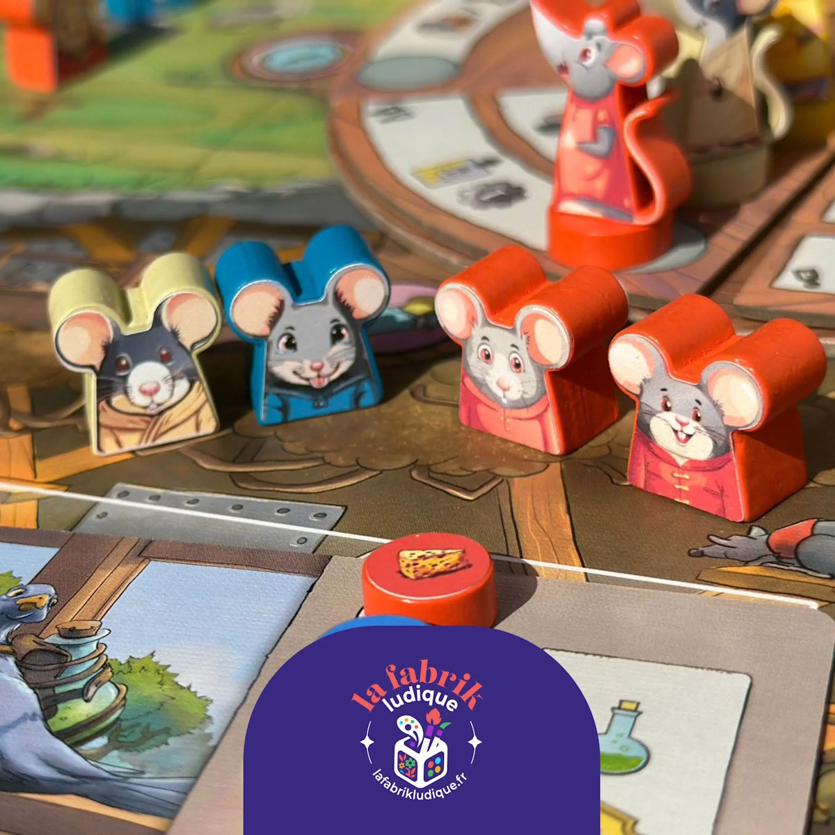 • Les Rats de Wistar (Liens d’achat Ludum, Philibert): J’entends souvent :  » j’ai subi ce jeu, je n’avais pas les cartes, les actions étaient prises, mes cartes étaient quelconques… » pourtant on arrive toujours à sortir son épingle du jeu. Les Rats de Wistar sont difficiles à dompter… ce placement d’ouvriers revient aux origines de cette mécanique : souvent une action ne peut se faire que par un joueur [ surtout si vous jouez à deux ] et c’est rageant de choisir tout autant que jouissif , je trouve le thème génial : vous allez découvrir les pièces de la maison, y accomplir des missions, jouer des inventions (cartes)…