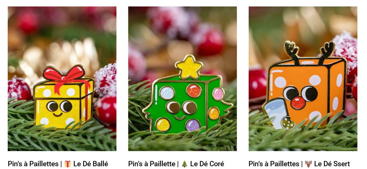 Le grenier ludique nous gâte encore cette année avec des pin’s mêlant jeu de société et Noel