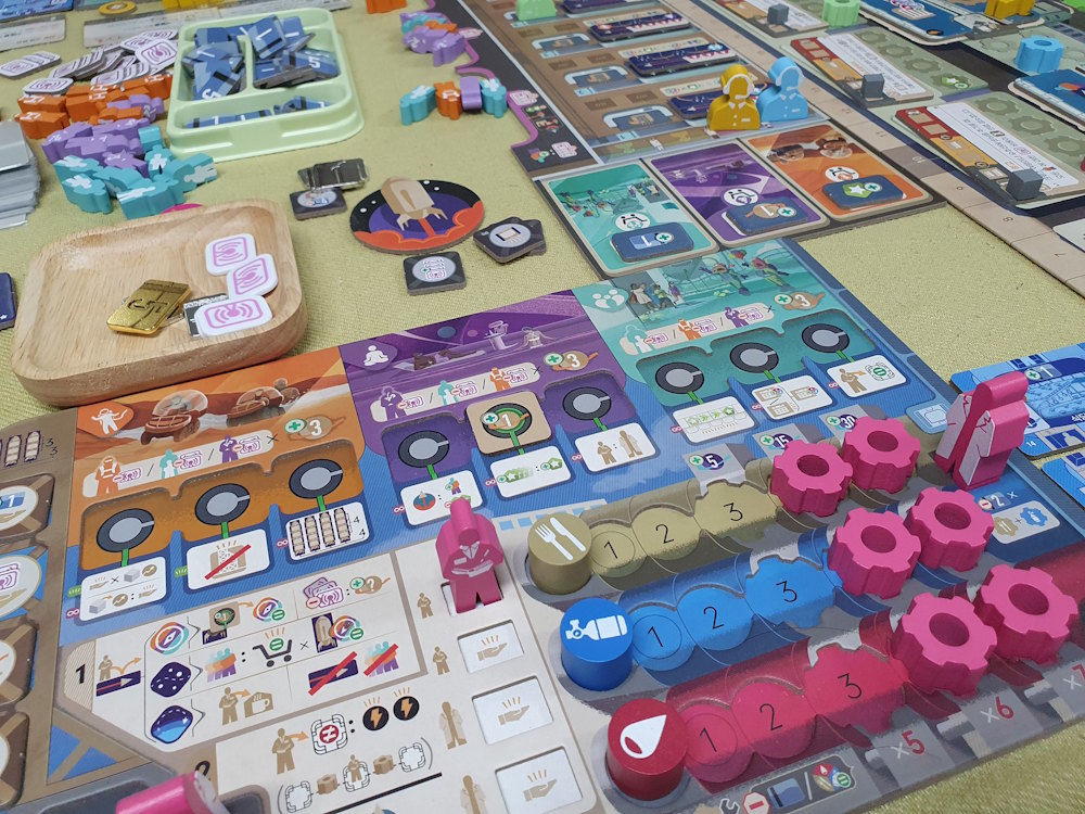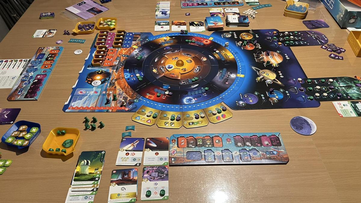 • Galactic Cruise (Liens d’achat  LudumPhilibert ) : encore un euro où le thème est particulièrement bien rendu. Vos navettes spatiales touristiques attendent vos passagers dans ce jeu de pose d’ouvriers revisité à merveille.