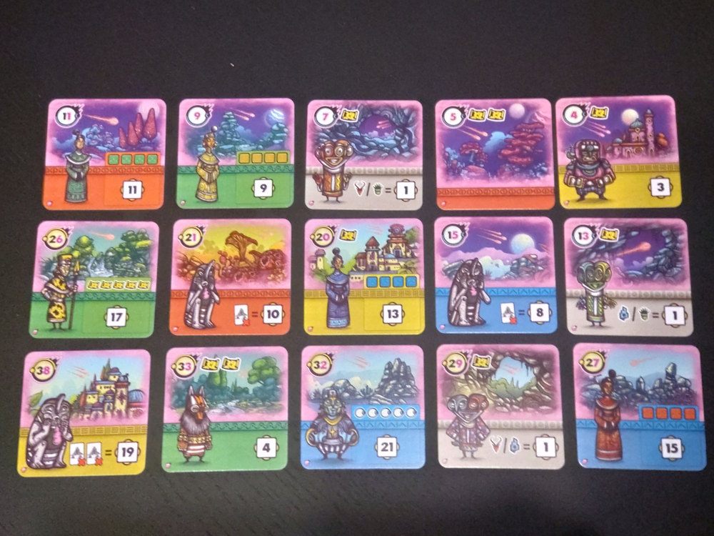 • Faraway (Liens d’achat Ludum, Philibert): la dernière extension « Sous un ciel d’Etoiles » est juste magique ! Les neurones devront être connectés pour y jouer correctement ^^ Chaque nouvelle carte Météorite permet de rendre VISIBLE les cartes ayant la même unité (si vous avez la météorite 12, toutes vos cartes dont le dernier chiffre est 2 sont visibles et ne sont jamais retournées pour le scoring… J ADORE !!!!)