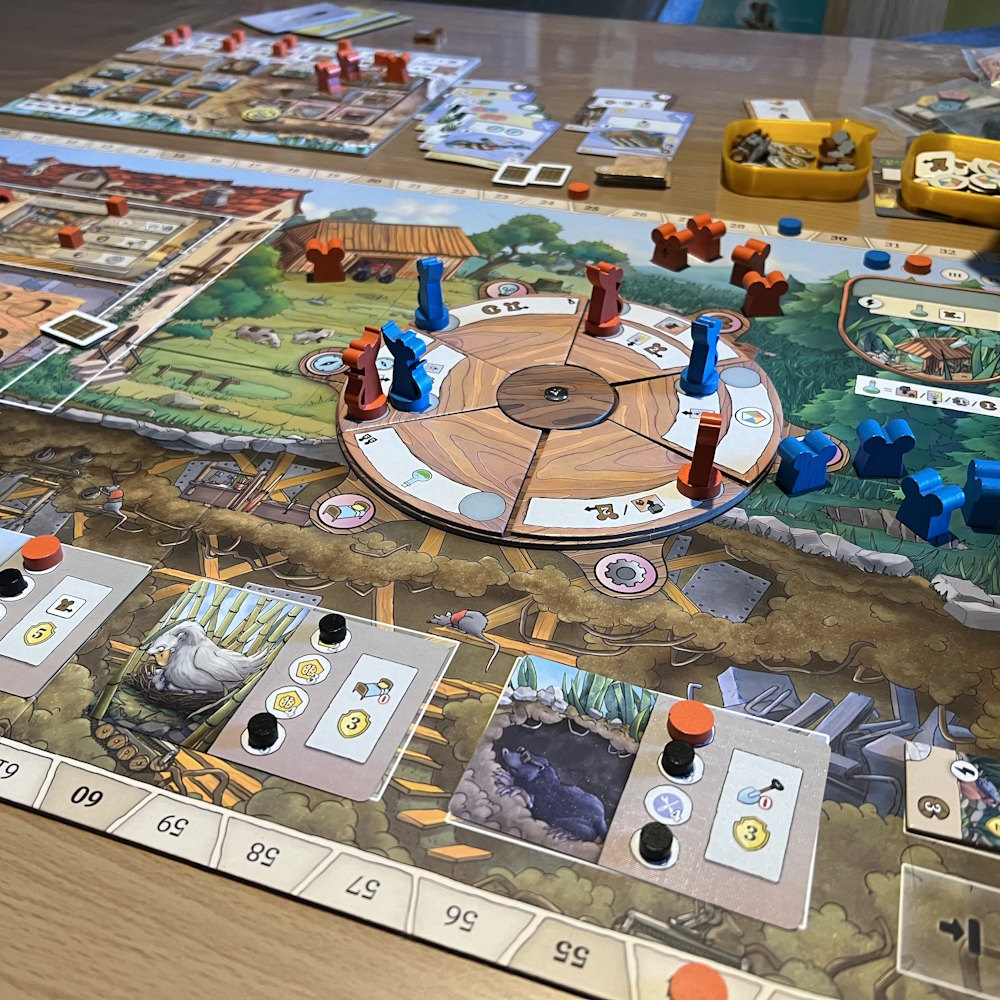 • Les Rats de Wistar (Liens d’achat Ludum, Philibert): J’entends souvent :  » j’ai subi ce jeu, je n’avais pas les cartes, les actions étaient prises, mes cartes étaient quelconques… » pourtant on arrive toujours à sortir son épingle du jeu. Les Rats de Wistar sont difficiles à dompter… ce placement d’ouvriers revient aux origines de cette mécanique : souvent une action ne peut se faire que par un joueur [ surtout si vous jouez à deux ] et c’est rageant de choisir tout autant que jouissif , je trouve le thème génial : vous allez découvrir les pièces de la maison, y accomplir des missions, jouer des inventions (cartes)…