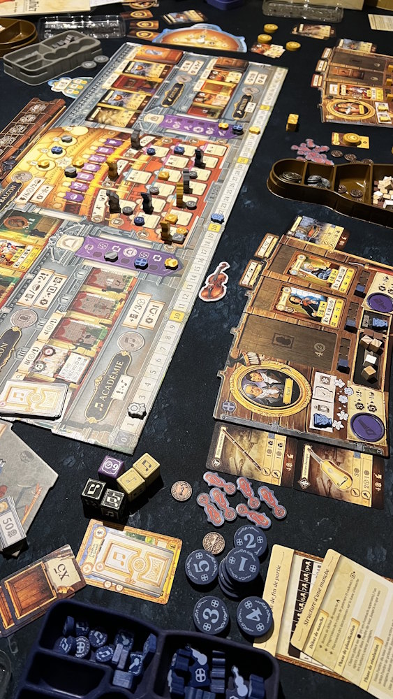 Car j’ai un avis très partagé sur Luthier. Tout le reste est superbement exécuté, mais cette mécanique spécifique a totalement brisé mon expérience : la possibilité pour un adversaire de balayer mes deux meilleurs coups de fin de partie, presque sans effort, en choisissant une action que je ne voulais pas faire de suite. Thématiquement, ce système d’actions forcées manque de cohérence à mes yeux. Ce sentiment d’impuissance face aux choix arbitraires des autres a été rédhibitoire : j’ai revendu le jeu dans la foulée, malgré de nombreux points positifs.