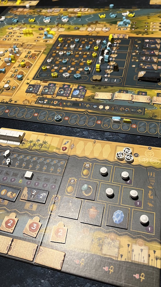 À travers trois époques, vous allez ériger des pyramides, commercer sur le Nil, faire des offrandes, momifier des dignitaires et inscrire votre nom dans l’Histoire pour obtenir le plus de points de victoire (Prestige).