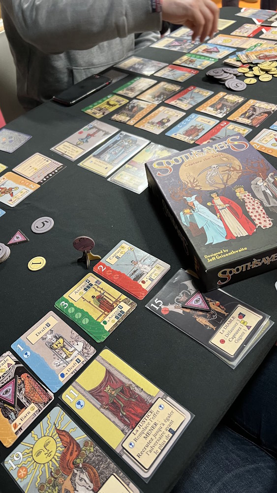 J’aime moins : la DA ne m’interpelle pas du tout (c’est très personnel). 2 parties sur 10 dans lesquelles les tarots 0,1,2 sont sortis en même temps et trop tard et du coup ils ont bloqué la rivière de cartes.